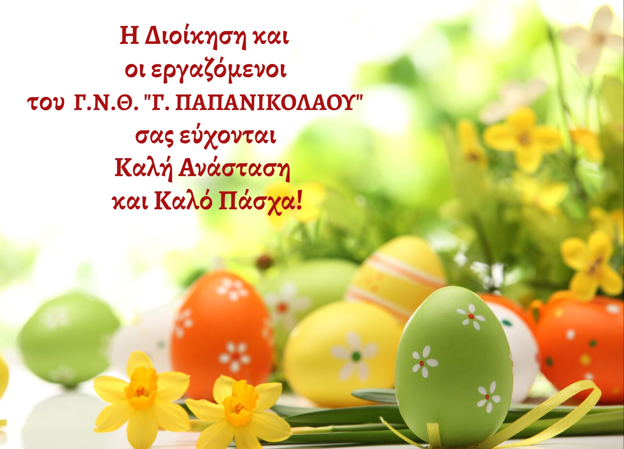 Η Διοίκηση και οι εργαζόμενοι του Γενικού Νοσοκομείου “Γεώργιος Παπανικολάου” σας εύχονται Καλή Ανάσταση και Καλό Πάσχα!